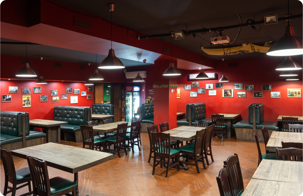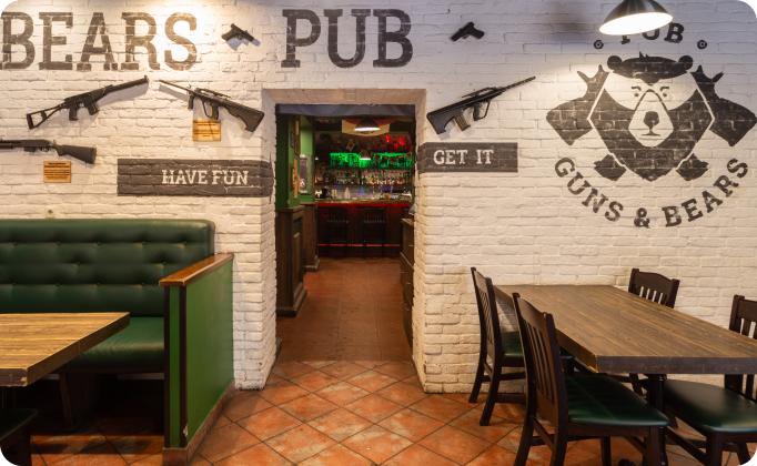Прекрасная кухня, приличный выбор пива, эля и целая страница СИДРОВ! Не так много, как в Сидрерии (на самом деле те же ребята), но всё же. Пушки по всем стенам, рок на фоне, стрельба в телевизоре. Что может быть лучше?